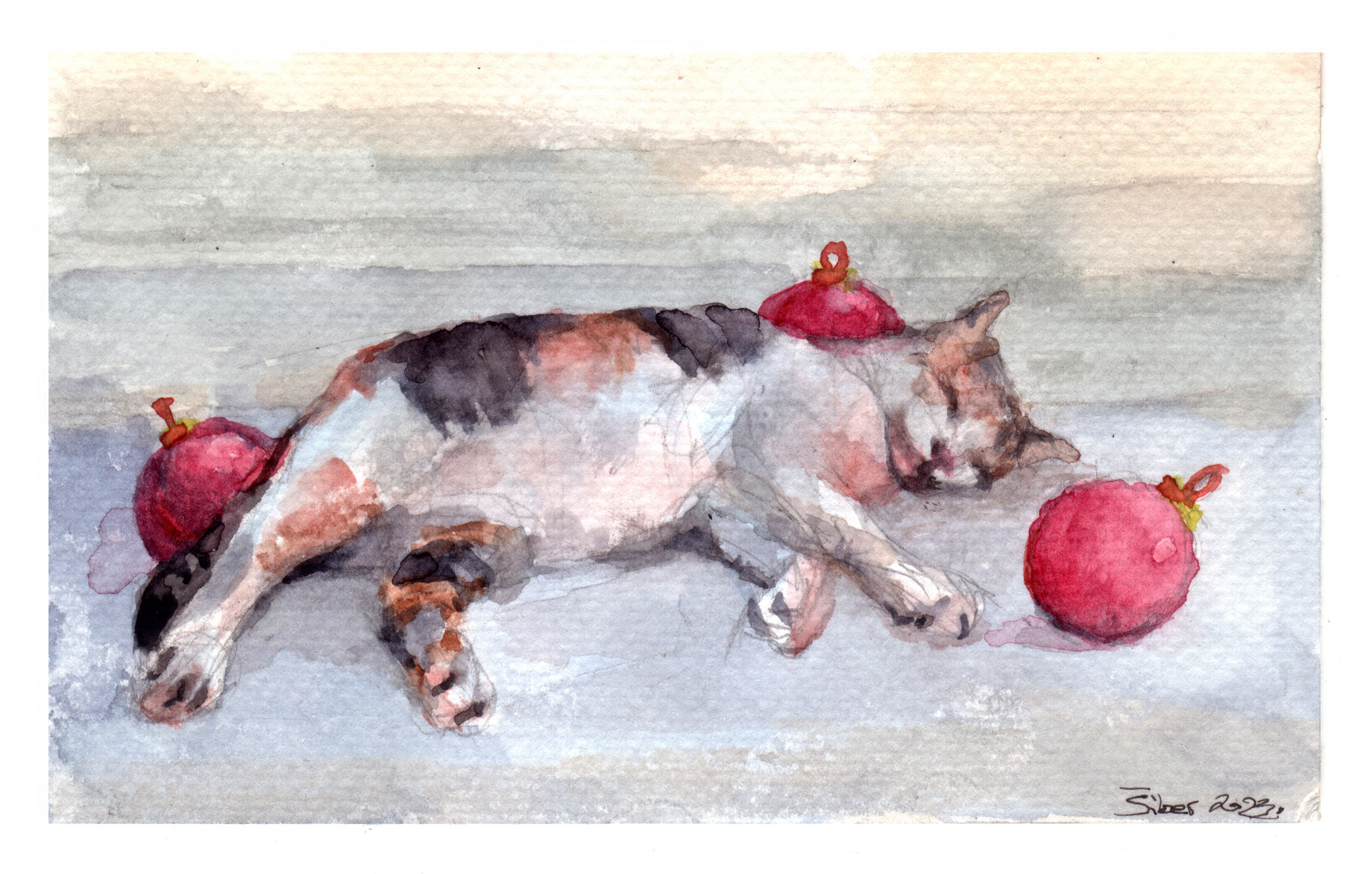 doduše, stvarno dobra. I malo akvarelnog papira, uglavnom popunjenog skicama mačaka. Mačaka? Da, životinja, mačaka, rekoh. Zapravo samo jedne mačke,