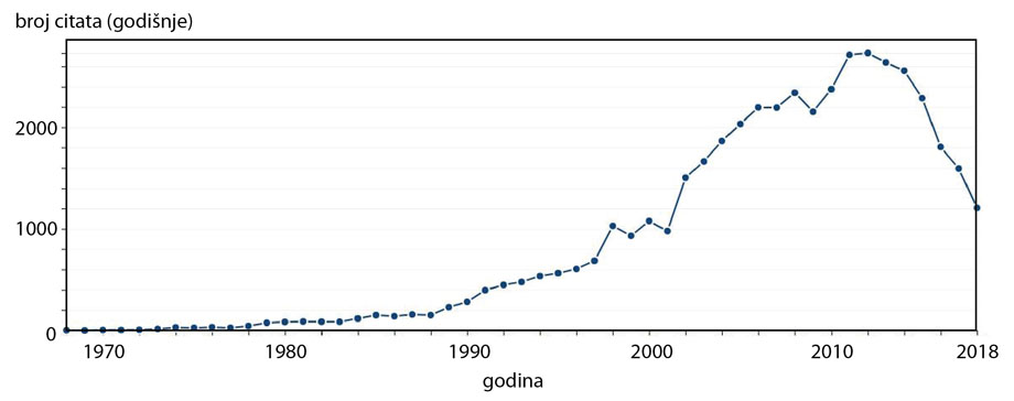 padati (vidi sliku ispod - prema Google Scholar podacima iz 21. listopada 2018. godine), a ukupno je do danas citiran preko