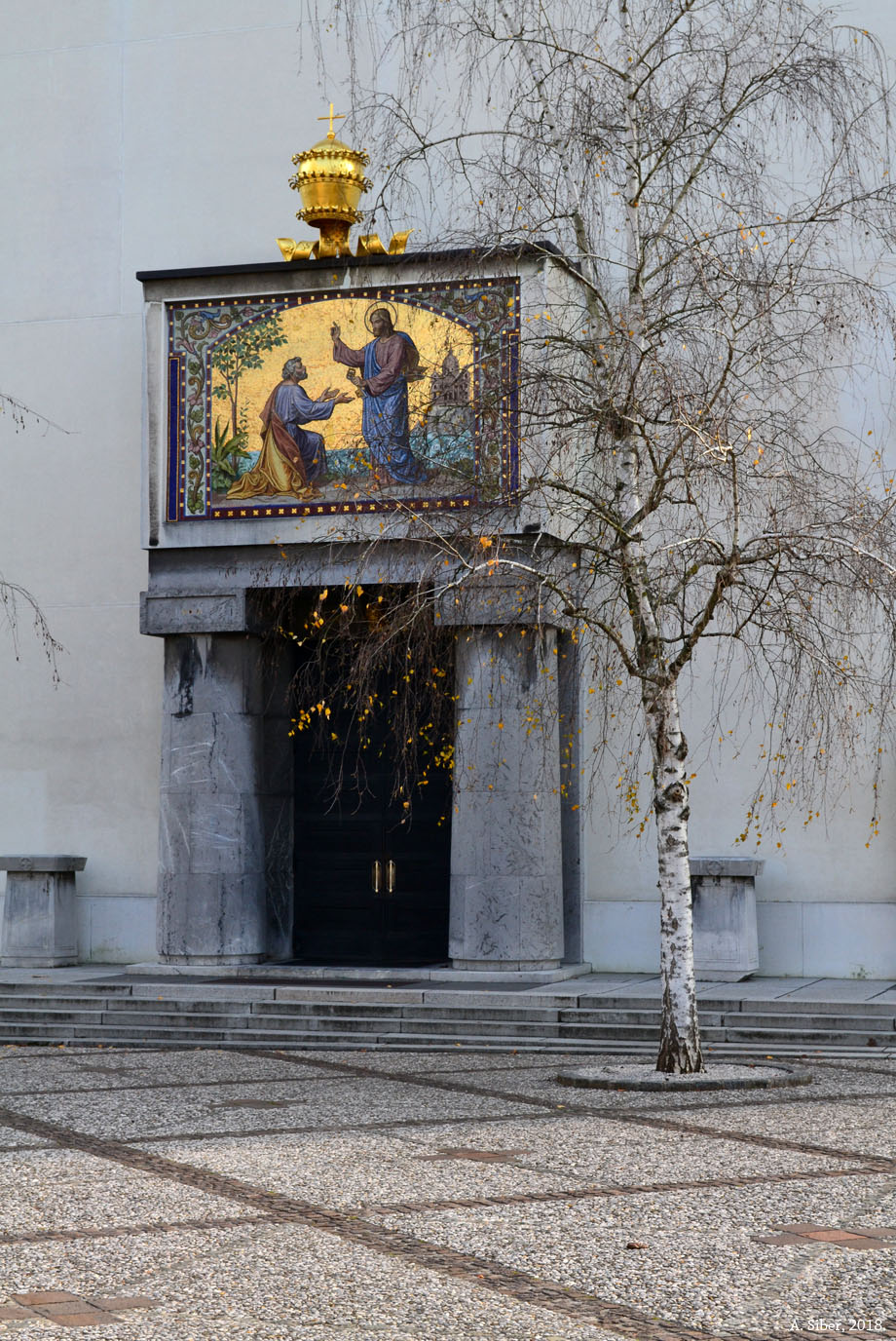 Sve se smiruje u studenom. Studen navire i u svjetlosti, no i dalje od svjetlosti ne treba odustati jer je i dalje ima za one koji dobro gledaju. Recimo pred crkvom sv. Petra u Ljubljani, 28. studenog (ispod). Zlato s breze i zlato s mozaika. Isus govori Petru da je stijena na kojoj će sagraditi svoju crkvu i daje mu ključeve Kraljevstva nebeskog. Meni je ipak draže zlato s breze.