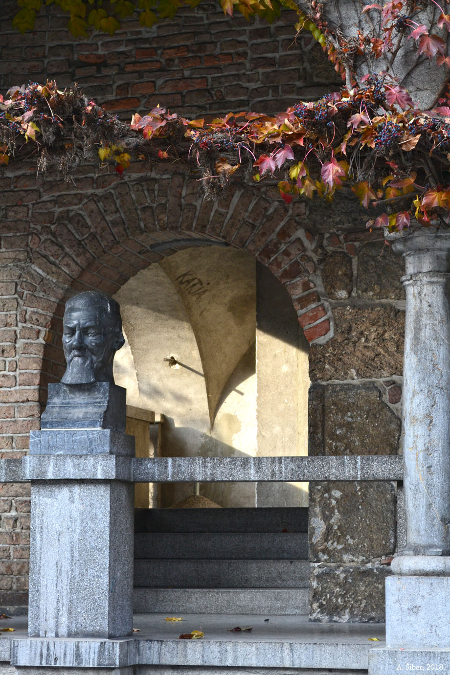 Isti sam dan ulovio svjetlost na Križankama, iza biste Jožefa Plečnika (ispod). Napunila je prostor ispod lukova.