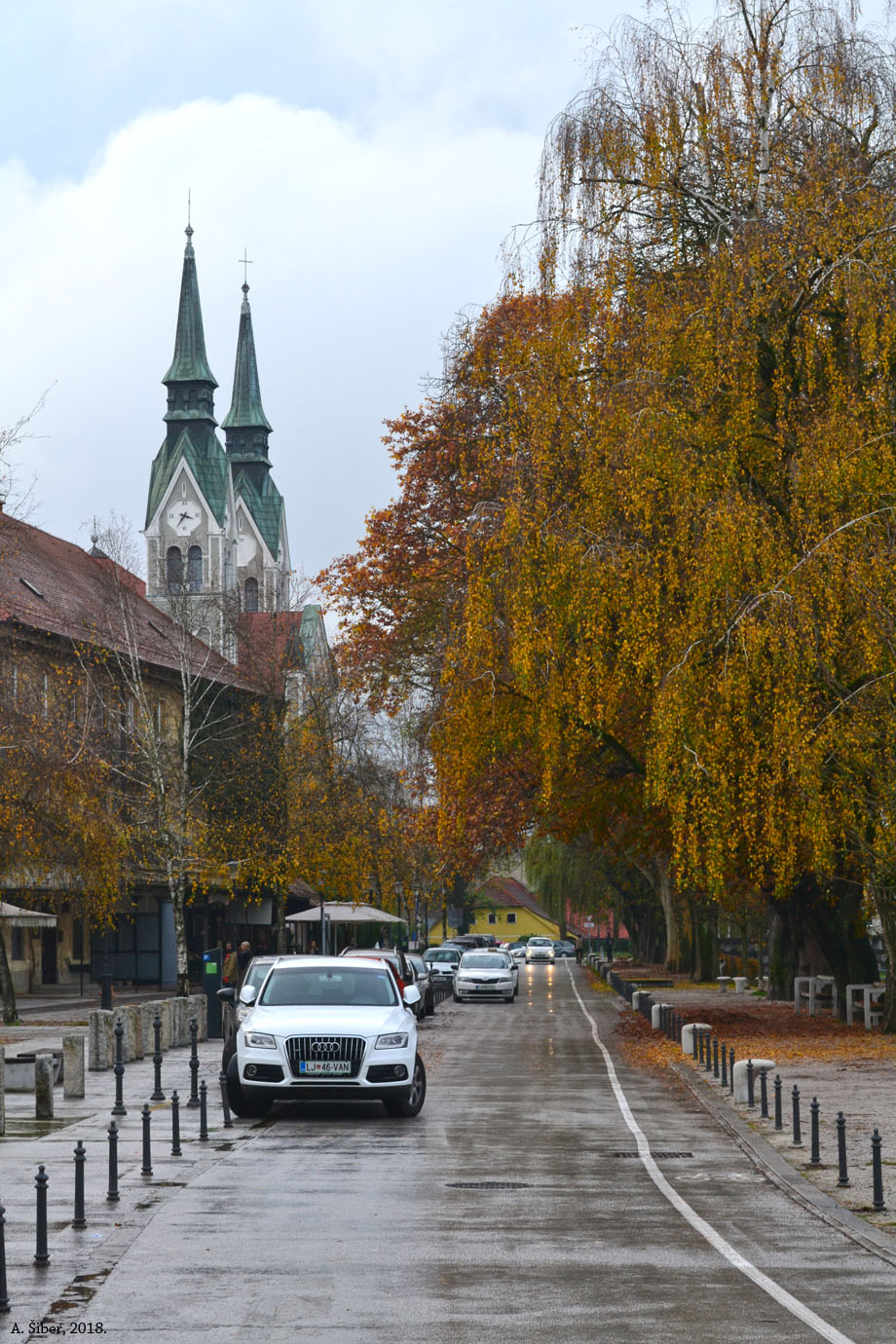 30. listopada ujutro, samo malo nakon što je prestala kiša koja me je i probudila, nađoh se u Trnovu (iznad). Asfalt je još mokar i u njemu se ogleda nebo.