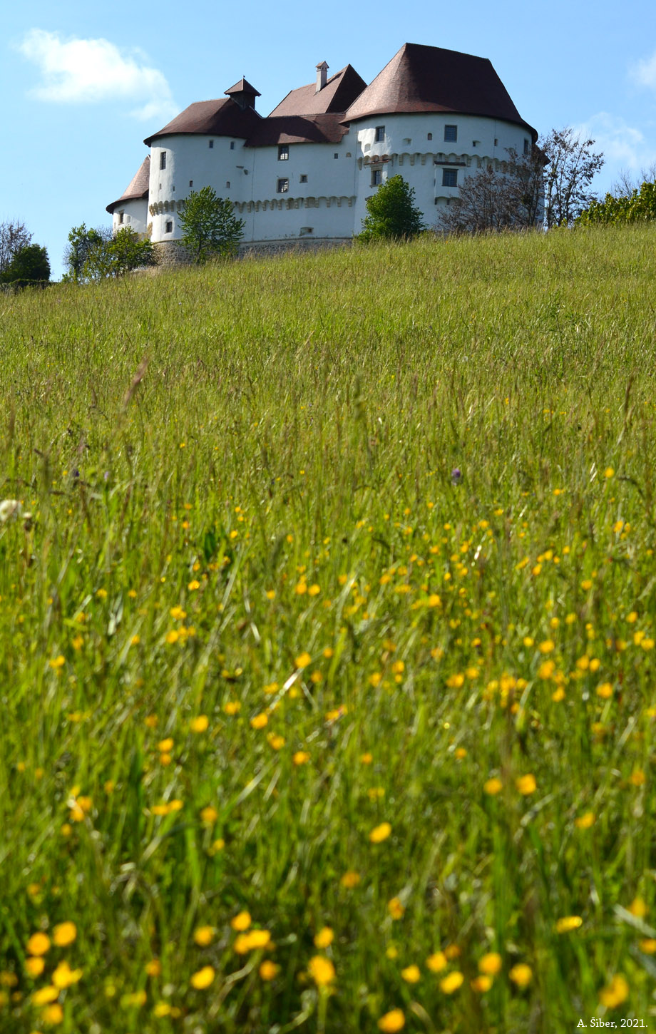 Dvorac Veliki Tabor gledali smo preko livade pune livadskih ljutića (ispod), a uz nju smo se do njega i popeli.