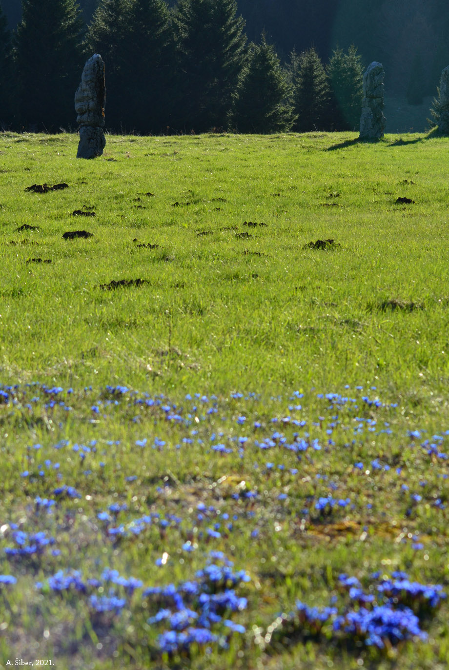 A na kraju smo završili u Matić Poljani (ispod). Između kamenih mrtvih partizana na nekoliko mjesta rasle su cijele kolonije, otoci proljetne sirištare (Gentiana verna). Takva plava se rijetko viđa u prirodi. Osim sirištare, vidjeli smo i sramežljivog medu koji je pobjegao među smreke kad nas je ugledao. A i nama je laknulo kad je pobjegao.