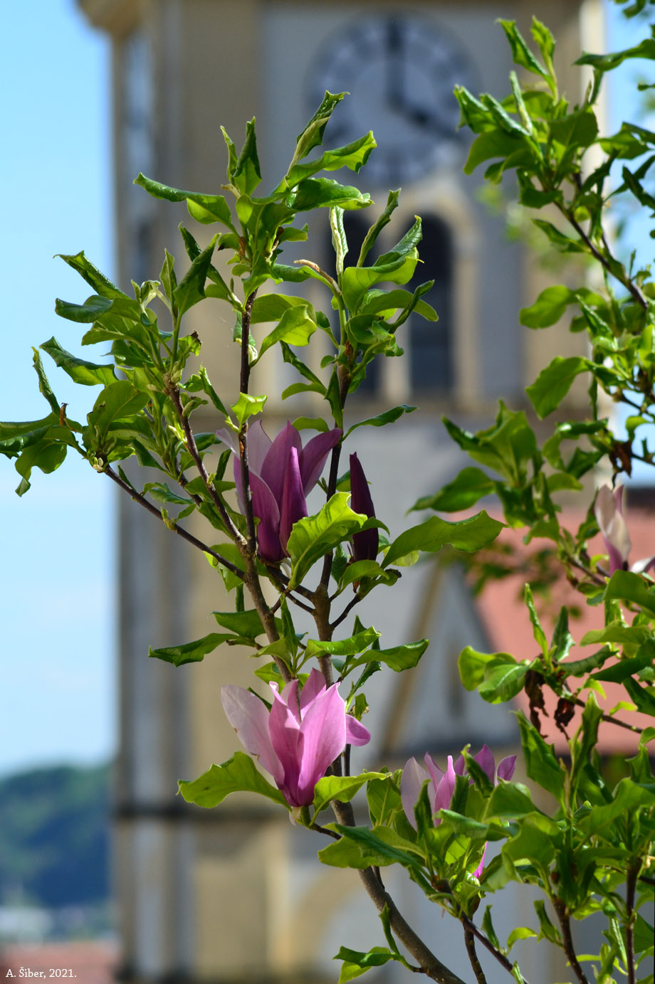 Na brdu iznad crkve otvorile su se ljubičaste magnolije (ispod)...