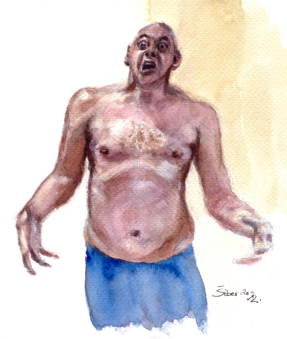 ipak lice bebice, to je lice već ostarjelog čovjeka kojem su se već pomalo objesili obrazi, a i podbradak, sve pojačano i izmijenjeno oteknutošću