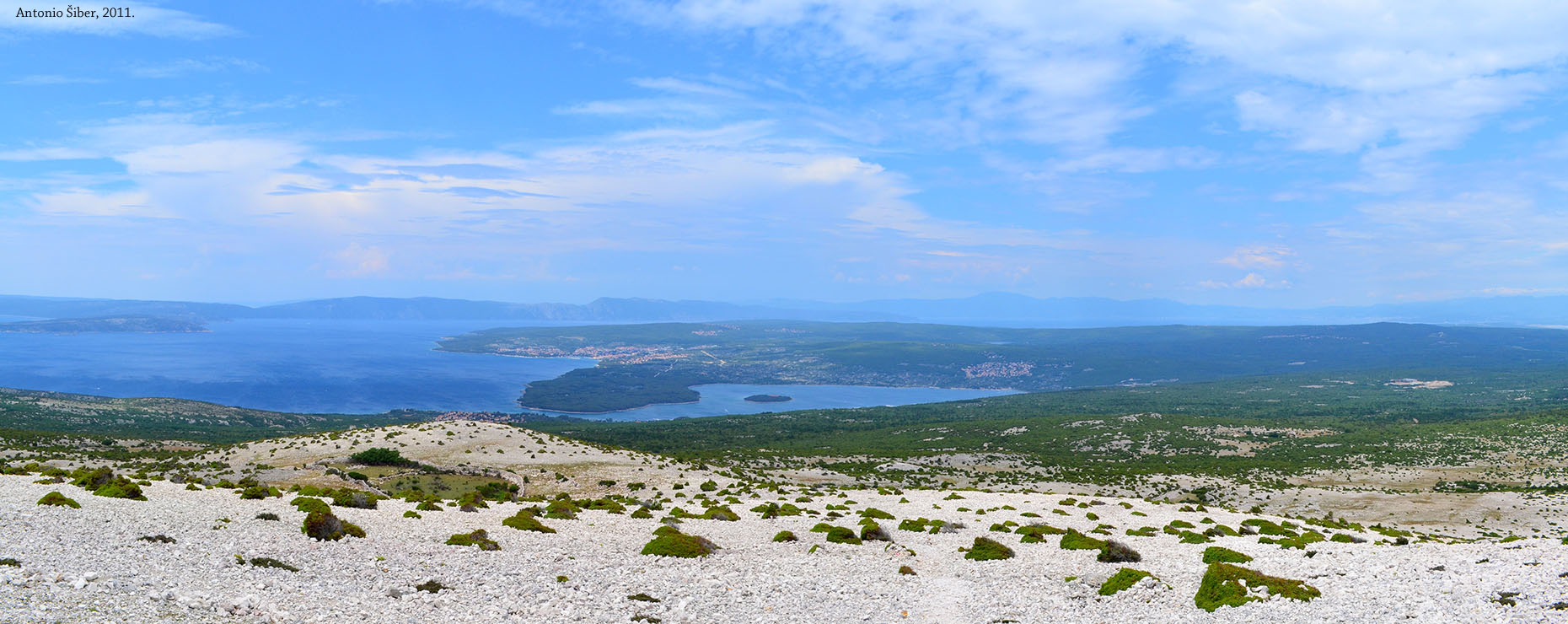 Kako se put penje, otvara se i pogled unatrag, na kopno i krčki kanal (ispod).