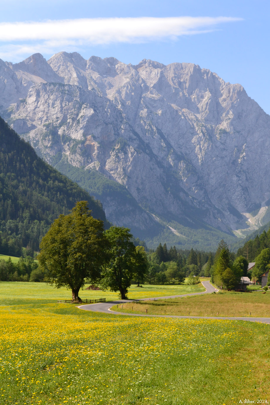 Logarska Dolina, pogled niz dolinu s pozicije direktno ispod slapa Rinka