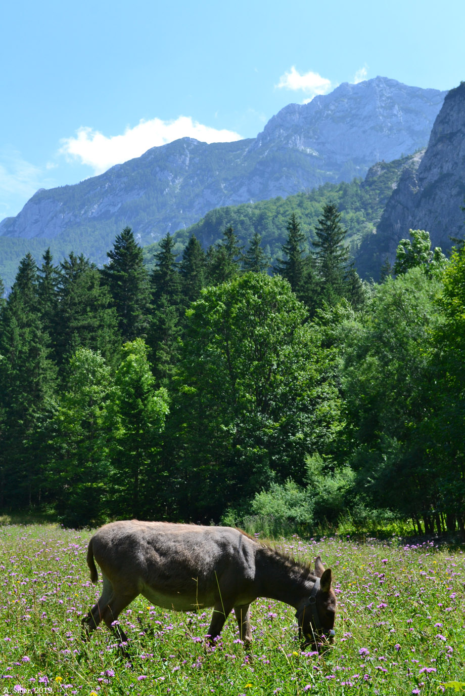 Mlada magarica u Logarskoj Dolini prišla mi je posve blizu, ali nedovoljno da je počeškam po glavi i vratu - dijeli nas vrpca pod naponom.