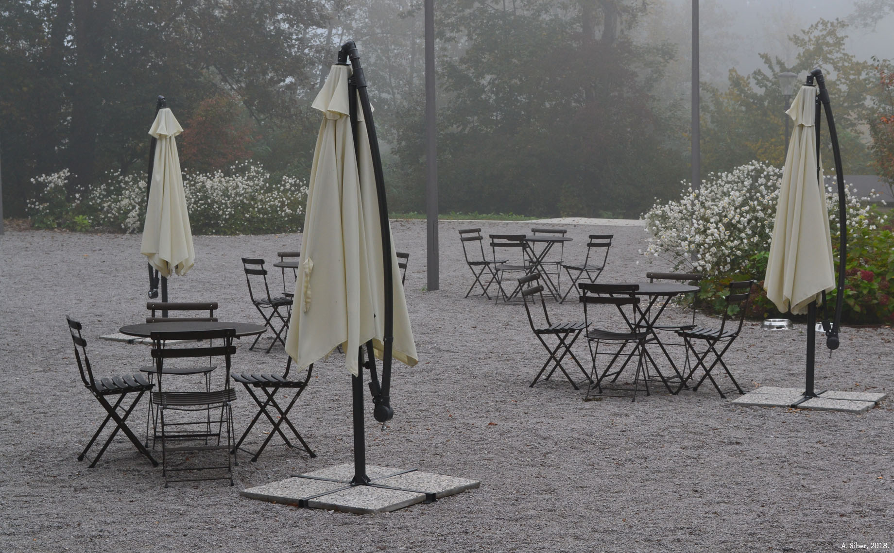 Bijele anemone gube se u sivilu koje se kao hladni znoj cijedi niz stupove zatvorenih suncobrana pred švicarijom. Jedanaesti listopada 2018. godine.