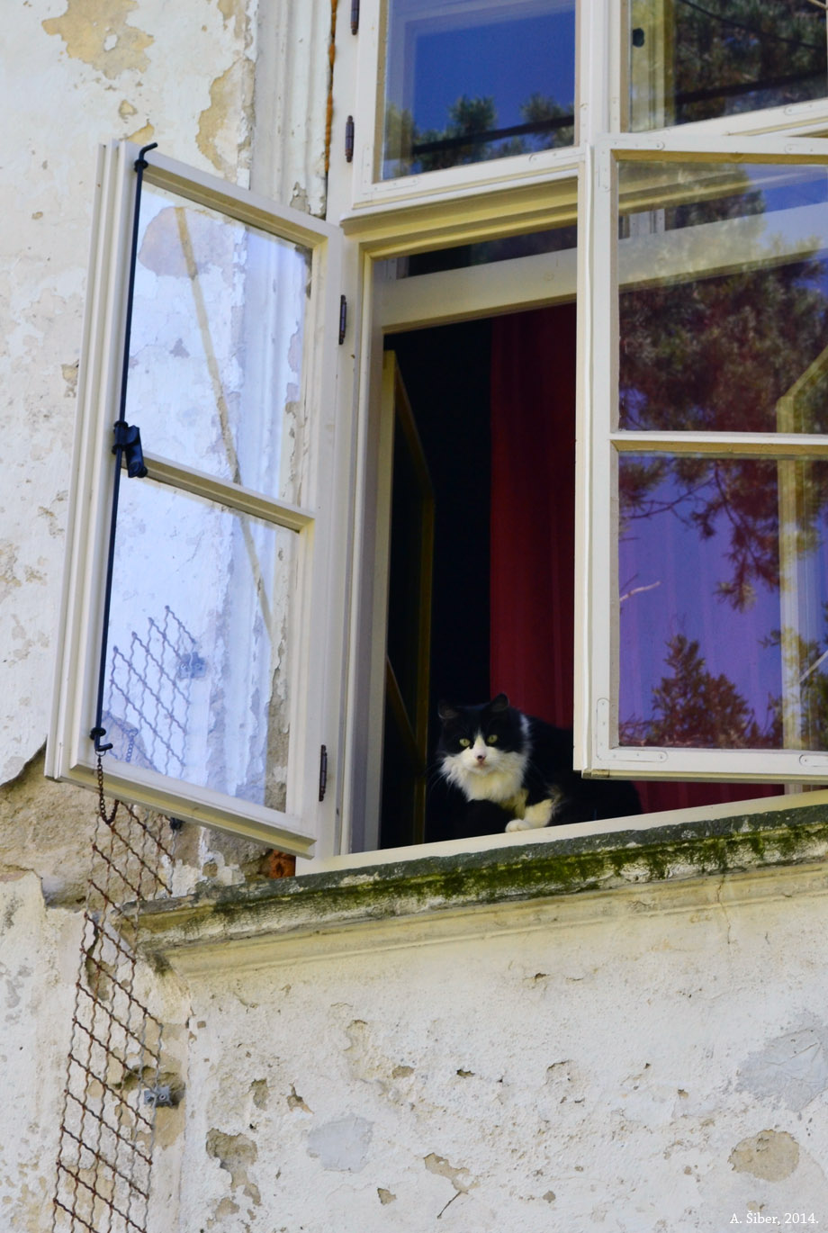 klupi pod prozorom na kojoj često leži mačka, a pogled puca na brda, plava od disanja šume.