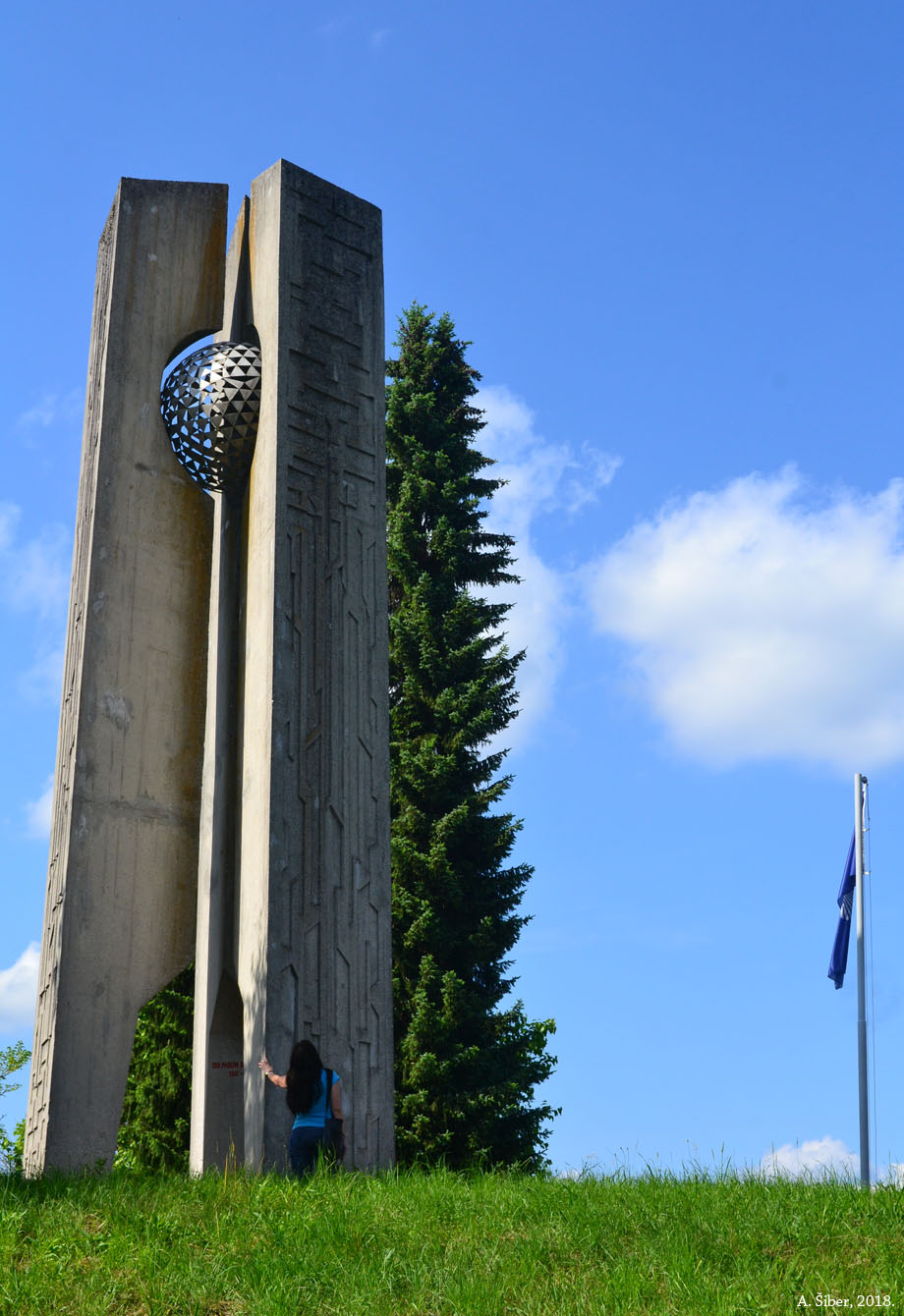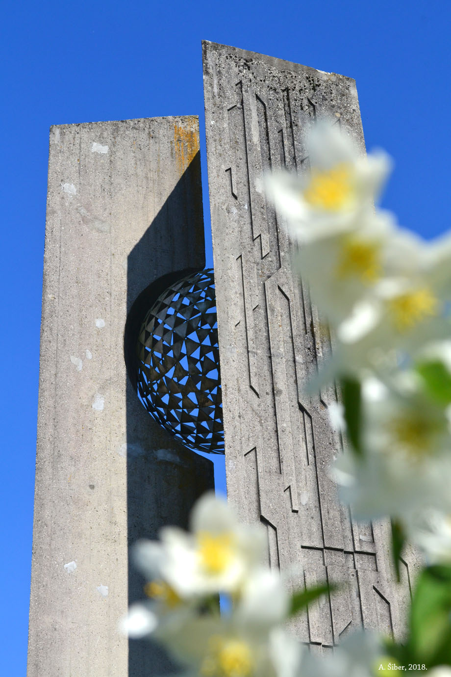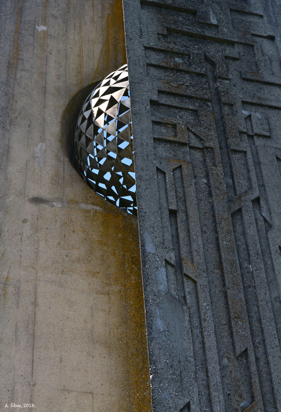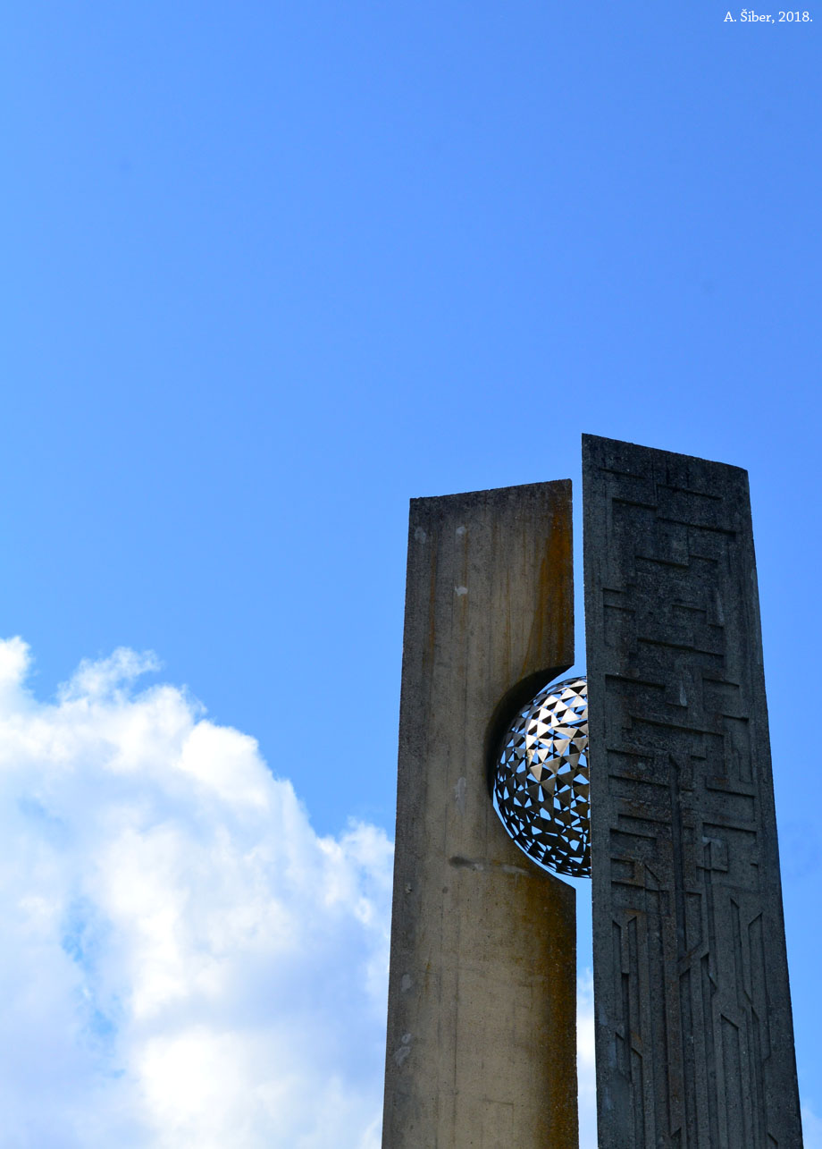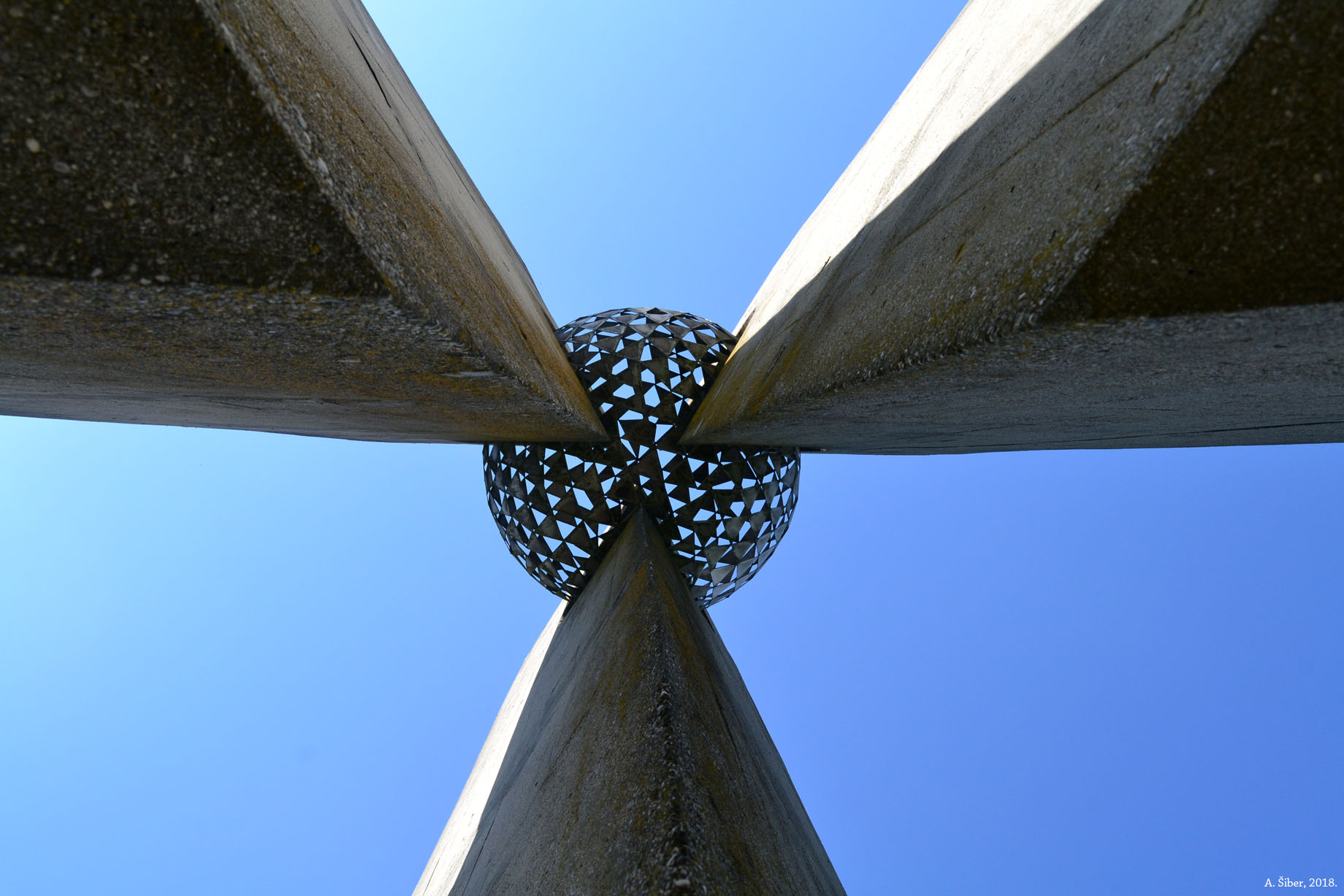 Koncept spomenika je relativno jednostavan: tri betonska stupa koji podržavaju sferu. Svejedno, vidici koje takva naizgled jednostavna struktura omogućuje su moćni (iznad; >> kliknite na fotografiju da je prikažete u dvostrukoj rezoluciji).