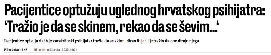 Činjenica da kod nas "uglednim" zovu psihijatra koji desetljećima zlostavlja pacijentice najbolje govori o našem društvu,