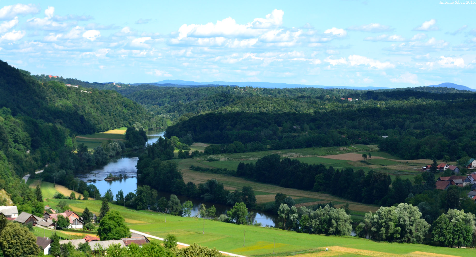 Spuštajući se natrag prema Vinici vidimo Kupu (ispod; >> Kliknite na fotografiju da je prikažete u dvostrukoj rezoluciji). Preko Kupe je Hrvatska.