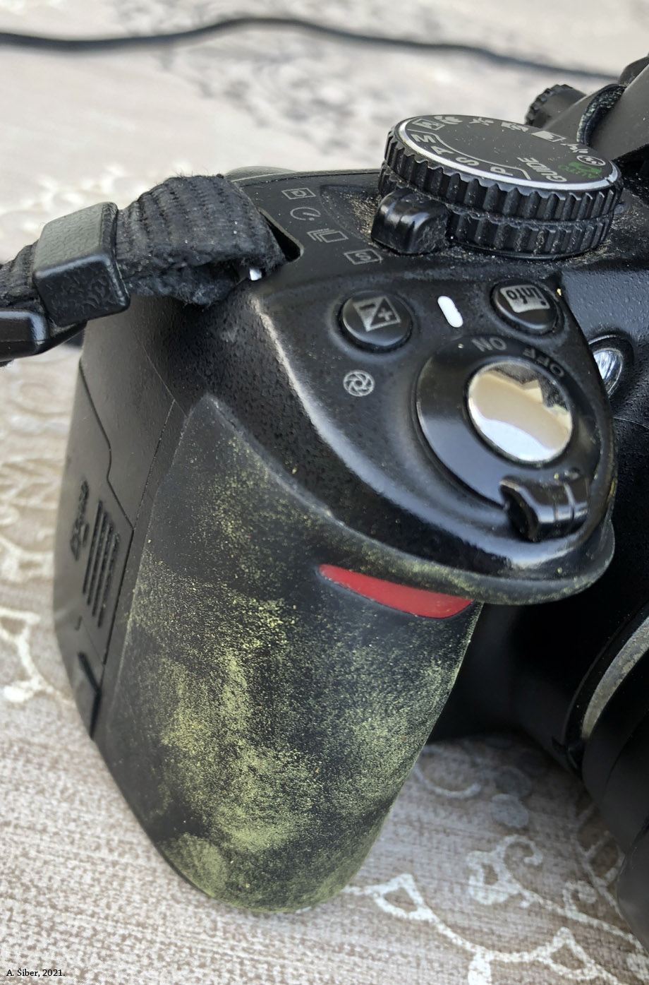 Zdrobio sam nekoliko resa u ruci i dlanovi su mi se zažutjeli. Uhvatilo se te peludi dosta na fotoaparatu, na mjestu predviđenom za držanje, a kako je podloga crna, žuti se peludni prah na njoj lijepo vidio (fotografija ispod).