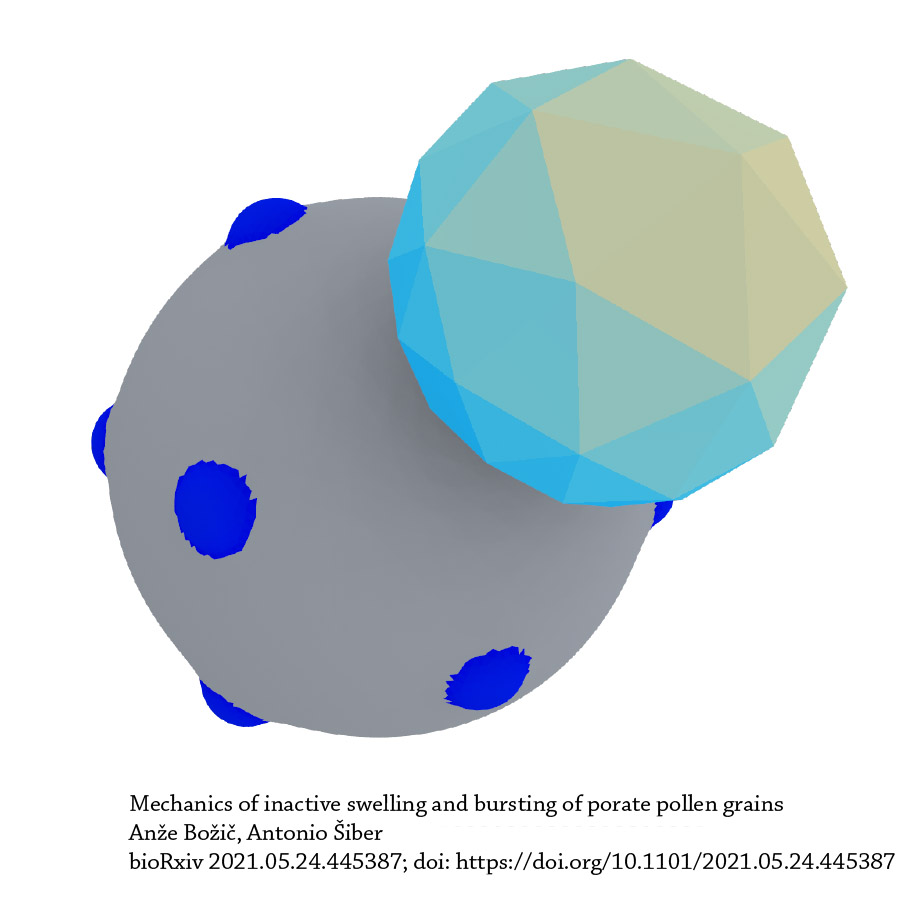 S Anžeom Božičem ove sam godine poslao rad u tisak koji je na tragu ovih istraživanja iako se odnosi na peludna zrna, a ne na krvne žile. Mi nismo studirali prsnuća krvnih žila nego zrna peludi i to na mjestima gdje su stijenke peludi mekše i tanje. Takva se mjesta nazivaju aperturama i iz njih prilikom biljne oplodnje izlaze peludne cijevi kroz koje zrna peludi dostavljaju stanice biljne sperme do ovula u plodnici tučka. No kad su u atmosferi, ta mekša mjesta na stijenci, evoluirala u kontekstu biljnog seksa, mogu postati mehanička slabost zrna peludi i dovesti do njihovog pucanja. U tom procesu zrno upija vlagu iz svoje okoline, tlak unutar zrna raste, a apertura se napuhne i pukne, posve slično kao što bi puknula oslabljena krvna žila. Slika prikazuje jednu takvu napuhnutu peludnu aperturu (žuto-svijetloplava izbočina) iz našeg rada poslanog u tisak. U medicinskom rječniku, ovo bi bila sakularna aneurizma. Studirano zrno peludi ima sveukupno 12 apertura i one se vide kao cirkularna tamnoplava područja u tvrđoj stijenci peludi prikazanoj sivom bojom. Samo se jedna od tih 12 apertura kritično napuhala i skoro sigurno puknula, iako je na našoj slici prikazana kao kompaktna struktura.