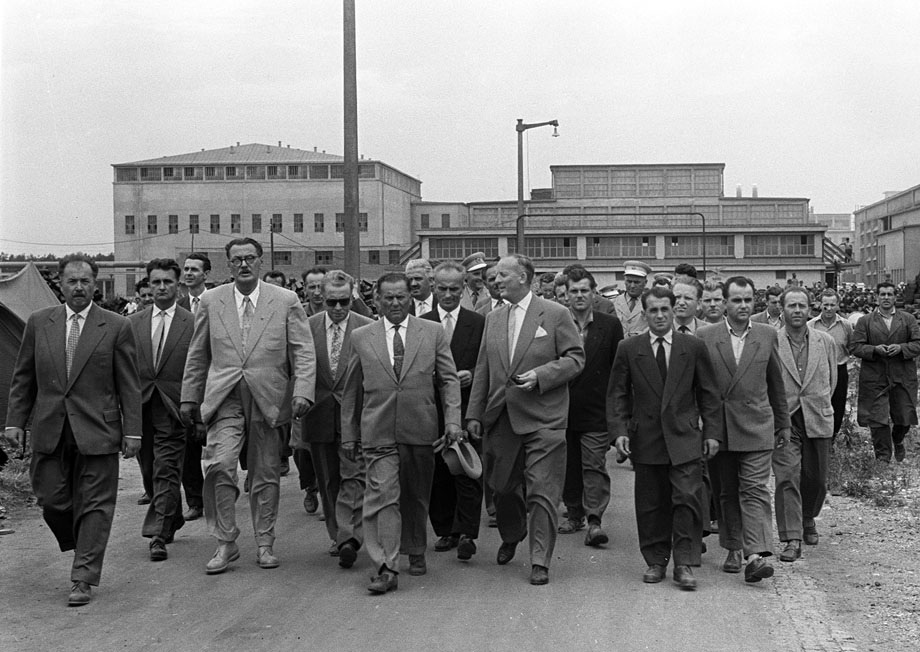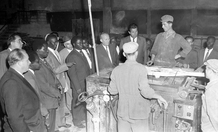 Ovo je čudno mjesto u šumi imalo razne posjetitelje, među njima parlamentarnu delegaciju Gane koja je tvornicu posjetila 1960. godine (ispod) ...