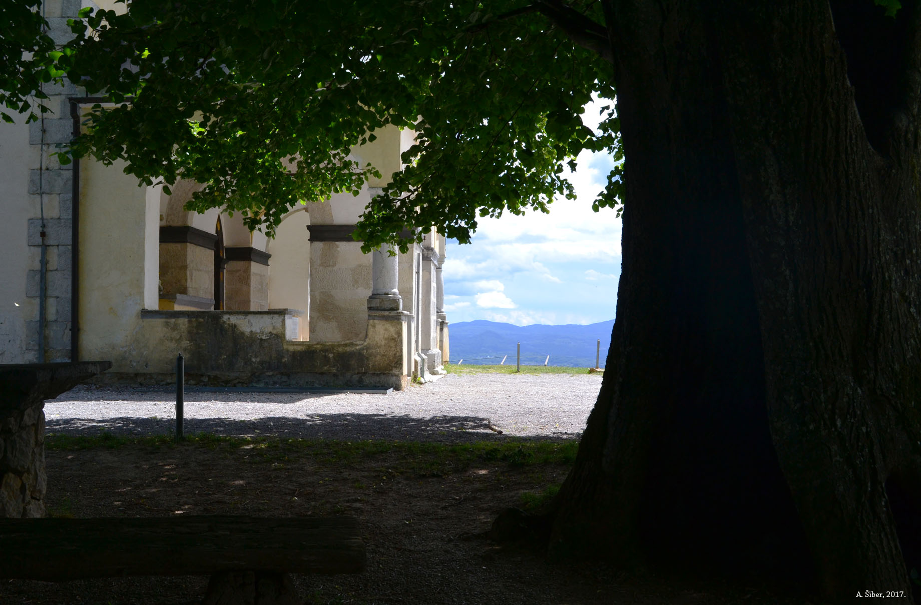 u Sloveniji (oko 400 godina - posađene su vjerojatno 1622 godine kad je dograđena crkva). One definiraju ovo mjesto debelim hladom (iznad). U hladu je mir.