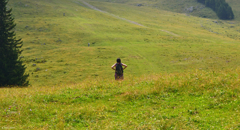 Trčkara između tek zasađenih voćki