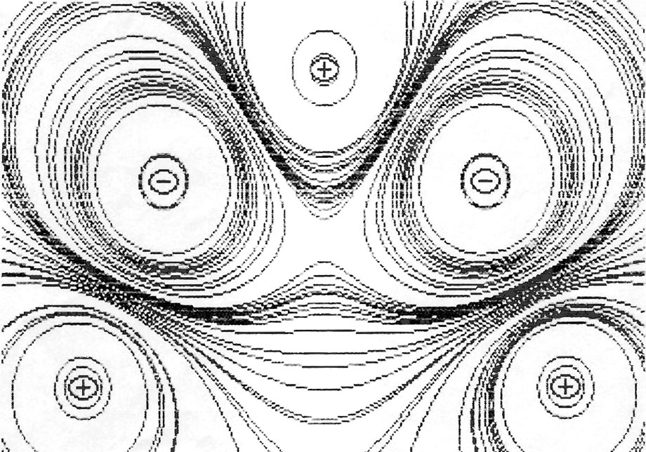 Slika iz maturalne radnje Antonija Šibera ("Električno polje", MIOC Zagreb, 1991. godine) prikazuje ekvipotencijalne plohe dvodimenzionalnog sustava naboja. Iscrtana je na hercules grafičkoj kartici (720×348 piksela, jednobojno).