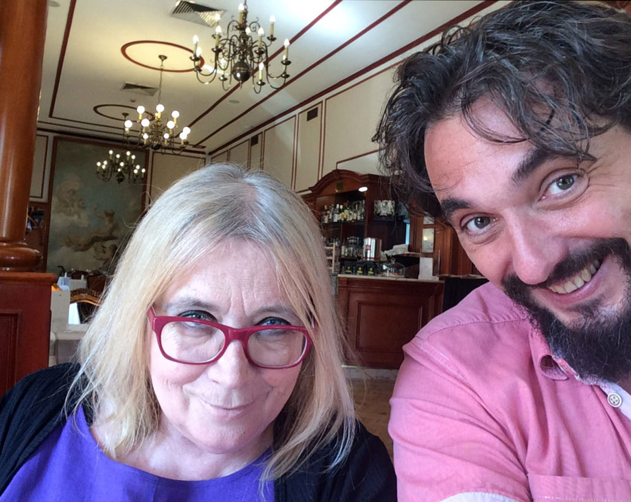 A 30. kolovoza 2017. godine, sreo sam se, dogovorno, i s profesoricom Čačinovič, također kolegicom s kojom sam iscrtavao zelene crte po zgradi Hrvatske televizije (iznad). Nas smo dvoje tada, uz kavu, razgovarali i o: